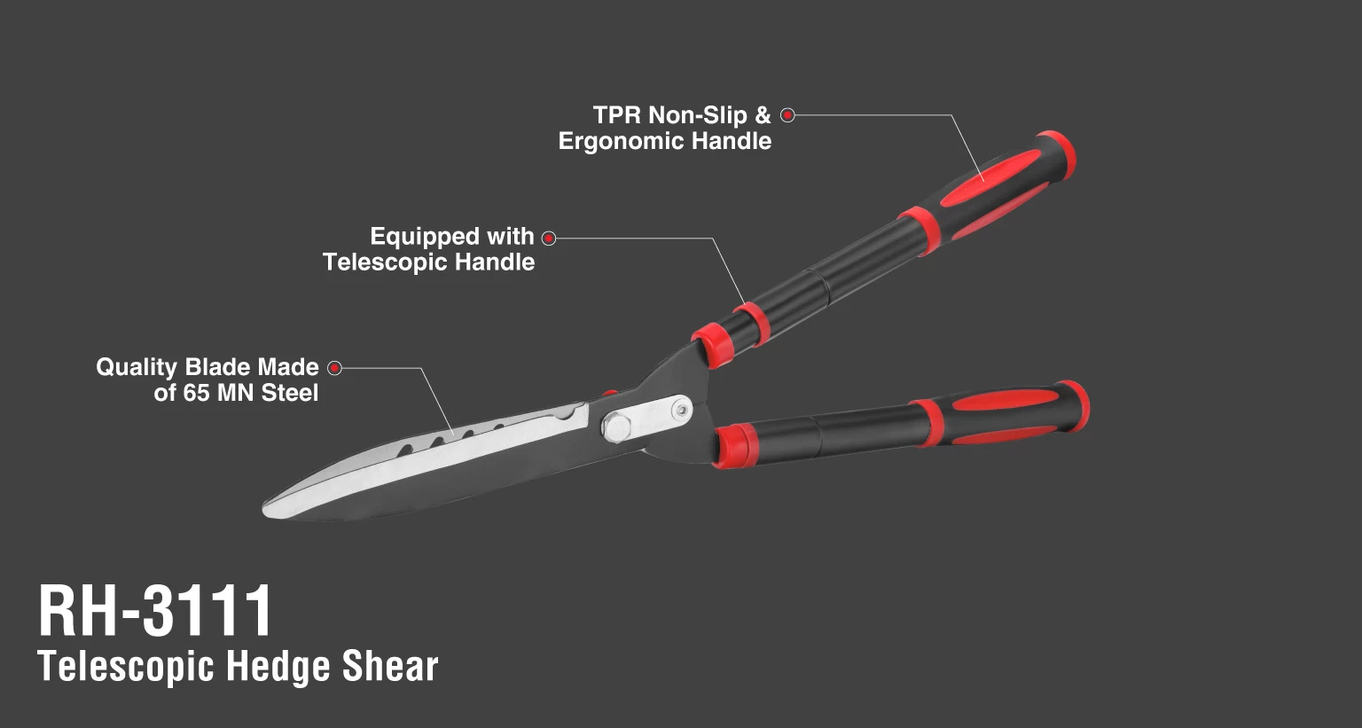 قیچی شمشادزن تلسکوپی رونیکس مدل RH-3111 ابزاری برای افزایش دقت و راحتی در باغبانی است. این قیچی دارای تیغهای از جنس فولاد MN65 است که دوام و تیزی بالایی دارد و با طول ۲۵۴ میلیمتر (۱۰ اینچ) برای بریدن شاخههای بلند بسیار مناسب است. ضربهگیر لاستیکی مقاوم، خستگی بازو و شانه را کاهش داده و از استهلاک تیغه در استفادههای طولانیمدت جلوگیری میکند.