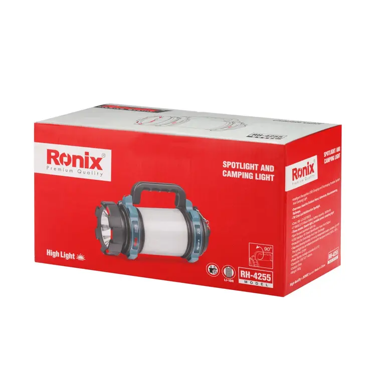 نورافکن لیتیوم حرفهای رونیکس با برد 1200 متر فضا را به خوبی روشن میکند. این نورافکن به عنوان چراغ جستجو، کمپینگ و حتی پاوربانک نیز قابل استفاده است.