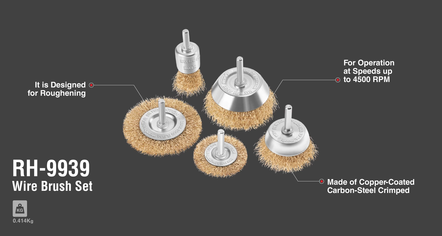 - مجموعه 5 تکه برس سیمی با درایو شش گوش 1/4 اینچی و سازگار با دریل ها