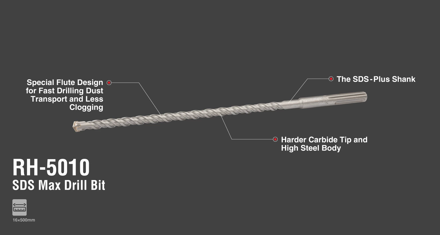 مته پنج شیار 500×16 رونیکس مدل RH-5010 یکی از بهترین متههای موجود در بازار ابزار ایران بوده و از مواد درجهیک ساخته شده است. محصولی از جنس فولاد و دارای شیارهای مارپیچی که برای سوراخکاری دقیق بتن، مصالح ساختمانی، سنگ و آجر از آن استفاده میشود.
