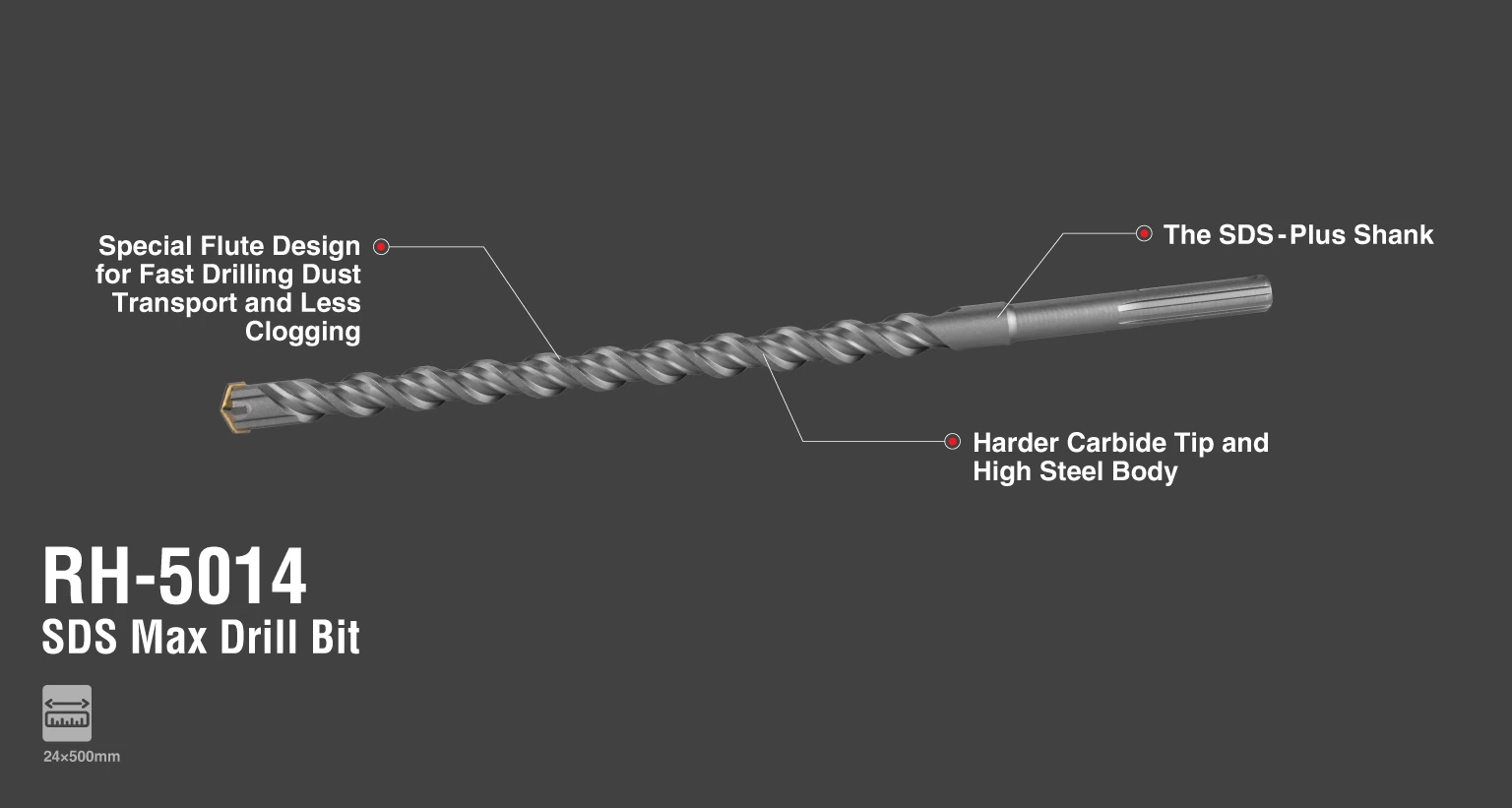 -مته پنج شیار SDS-Max ساخته شده از مواد با کیفیت بالا، دارای کاربید تنگستن با قدرت برشی بالا در نوک مته و بدنهای از جنس فولاد برای افزایش طول عمر مته و عملکرد سریع