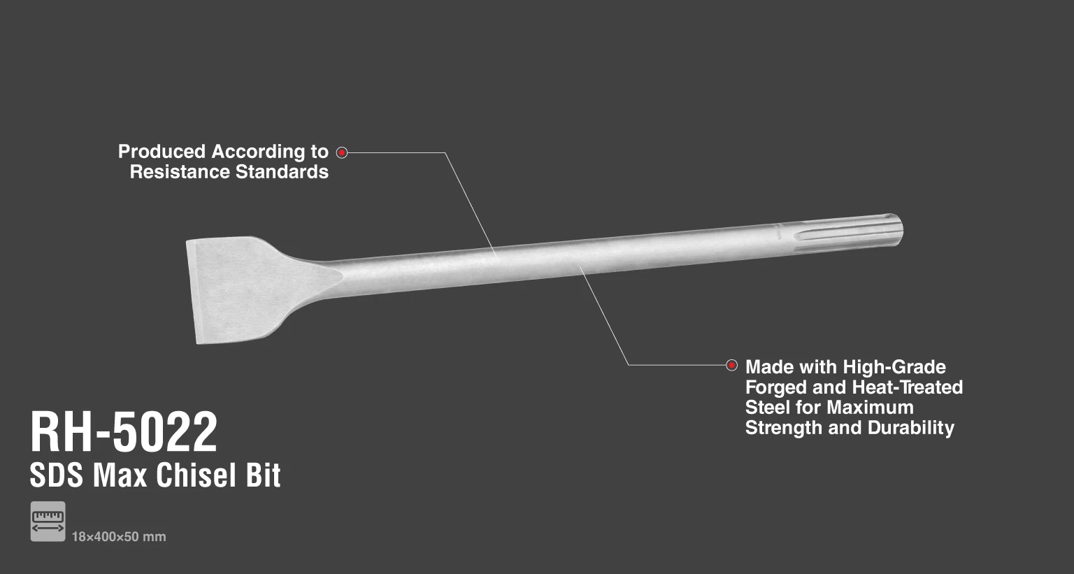 از دیگر ویژگی های این محصول طراحی نوک قلم و اندازه بزرگ بدنه آن است که به قلم کاری سریع و افزایش دقت و استمرار در عملیات تخریب کمک می کند. این قلم نوک پهن در ابعاد 50*400*18 میلی متر تولید شده و در لوله پلاستیکی طراحی شده توسط رونیکس به بازار ابزار ارائه شده است.