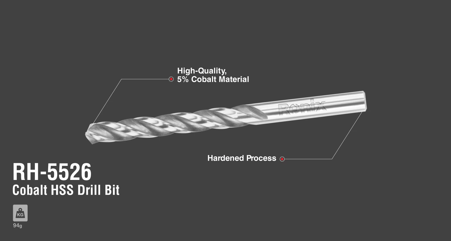 - ساخته شده از فولاد 5 درصد کبالت که افزایش عمر مته‌ها و عملیات سوراخ‌کاری دقیق را به همراه دارد.
