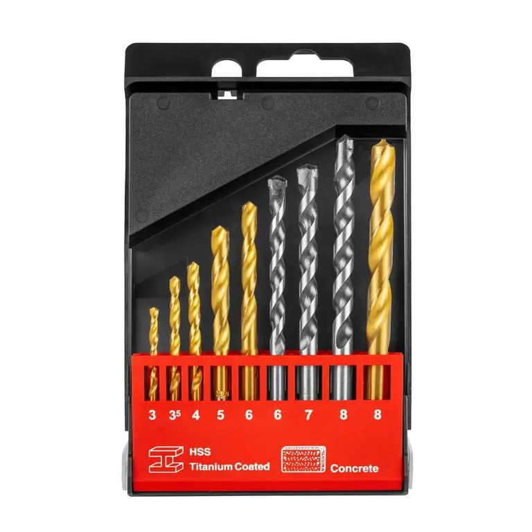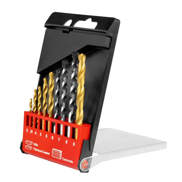 - مجموعهای کاربردی شامل 9 مته HSS برای عملیات سوراخکاری