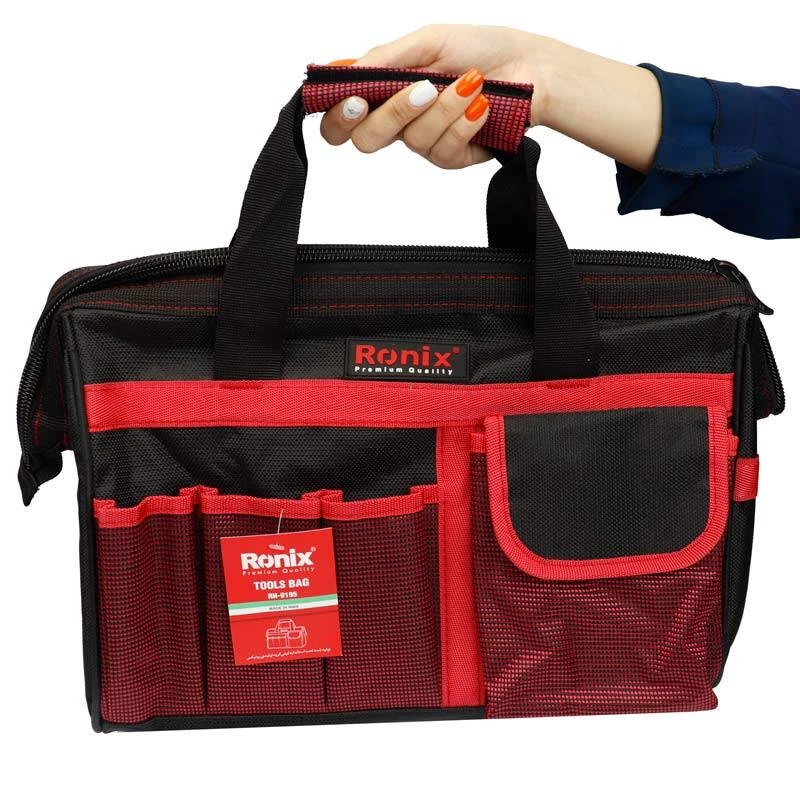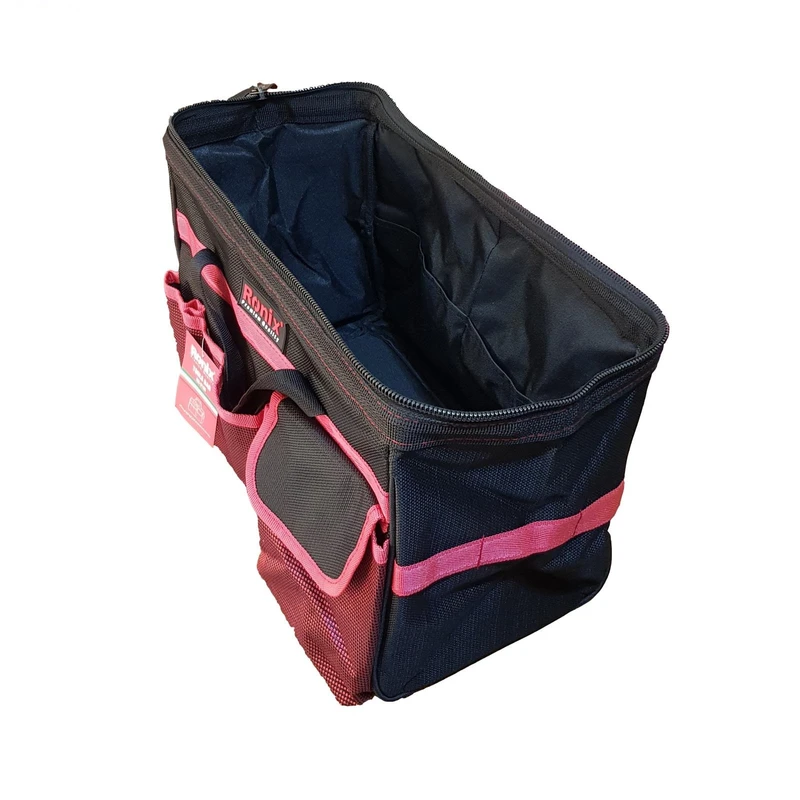 سایر توضیحات : دارای دستگیرهی پارچهای چسبی برای نگهداری راحت کیف/طول دستگیره : ۱۱.۵ سانتیمتر/دارای چهار عدد پایهی پلاستیکی و کفی قالبی در کف کیف