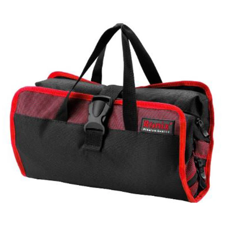 کیف ابزار برزنتی ارگانایزر تاشو رونیکس مدل RH-9163 با استفاده از بهترین متریال برزنت جهت افزایش طول عمر ابزار به بازار ابزارآلات ارائه می شود . شیوه دوخت انجام شده برای این کیف ابزار برزنتی کاملا مدرن بوده و توسط ماشین آلات تمام اتوماتیک انجام می شود . جهت افزایش استحکام و تحمل وزن های بالا این کیف ابزار برزنتی ارگانایزر از دو لایه درونی و بیرونی ساخته شده است . همچنین برای سهولت قرارگیری ابزارآلات و متعلقات در این کیف برزنتی رونیکس بیشترین تعداد جیب های داخلی و خارجی برای آن در نظر گرفته شده است . زیپ این کیف ابزار برزنتی از جنس با کیفیت و قوی است که اتصالات آن به لبه ها نیز مقاوم است .