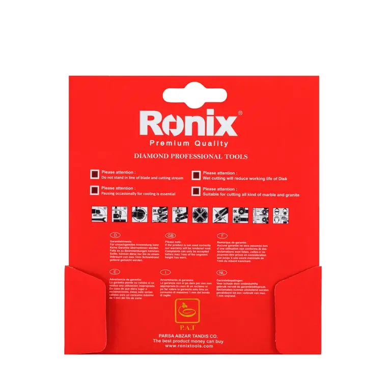 همان طور که پیش از گفته شد قطر این صفحه 115 میلیمتر است و از این صفحه میتوان جهت برشهای خشک و تر استفاده کرد. رونیکس تا کنون گستره ای وسیع و متنوع از ابزارآلات، متعلقات و قطعات گوناگون تولید کرده است که صفحات گرانیتبر نمونهای از متعلقات ابزارآلات برشی این شرکت هستند. به همین ترتیب این برند توانسته است، پیوندی عمیق بین علم و بازار برقرار کرده و با عرضه محصولات با کیفیت، نیاز فعالان صنایع مختلف را پوشش دهد.