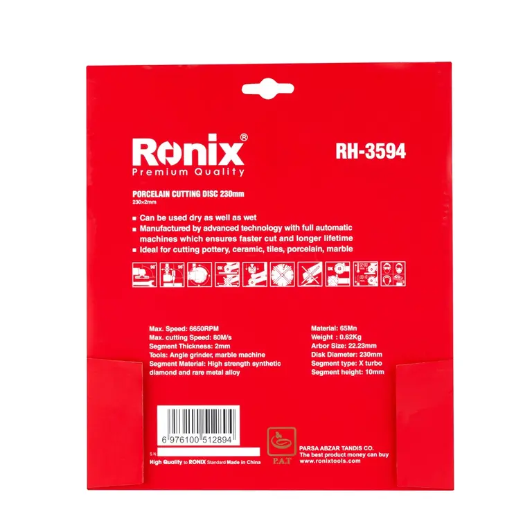 در بخش توضیحات محصول، مشخصات صفحه برش پرسلانبر 230 میلیمتری رونیکس مدل RH-3594 را بیشتر بررسی کنید.