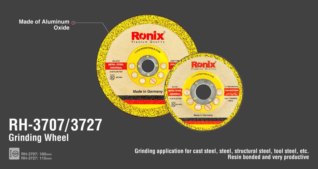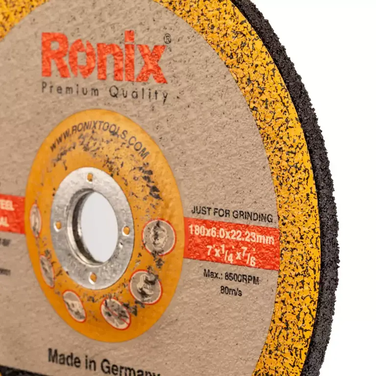 سنگ ساب آهن 22 × 6 × 180 میلی متری آلمانی رونیکس تحت عنوان کد محصول RH-3707 یکی از نمونههای با کیفیت و مطرح این نوع از سنگ ها است. این صفحه ساب قطری معادل 180 میلیمتر یا 7 اینچ دارد و قطر محور آن نیز به حدود 22.2 میلیمتر میرسد. ضخامت این صفحه 6 میلیمتر است تا از پهنای کافی برای کارهای مداوم برخوردار باشد.