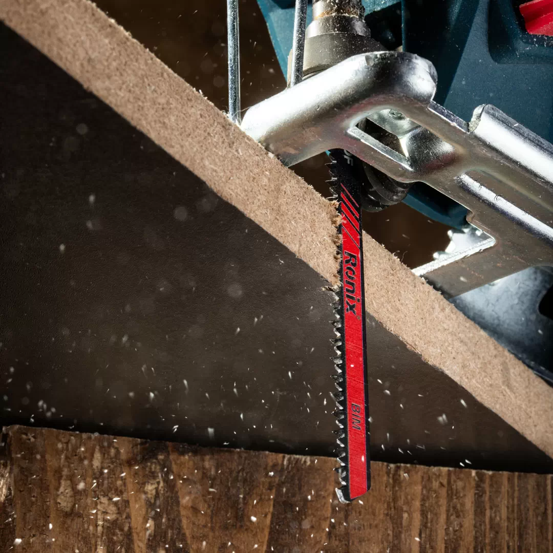 تیغه از ترکیب فولاد کربن بالا و فولاد تندبُر BIM (6150+M2) به طول 100 میلیمتر ساخته شده؛ طول کاری آن 75 میلیمتر بوده و برای برش انواع صفحات MDF، تختهلایه، پلاستیک و اپوکسی طراحی شده است. شنک تیغه به شکل T بوده و میتوان آن را به راحتی در اره نصب یا تعویض کرد. ظرفیت برش آن نیز در محدوده 30-2 میلیمتر قرار دارد.
