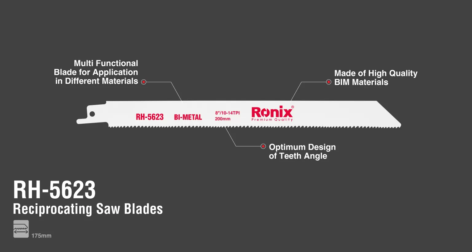 تیغ اره افقیبر همهکاره 178 میلیمتری رونیکس مدل RH-5623، ساختهشده با فناوری بیمتال است. در این طراحی از دو فلز سخت و نرم استفاده میشود: فلز نرم برای انعطاف تیغ اره و فلز سخت برای دندانهها.