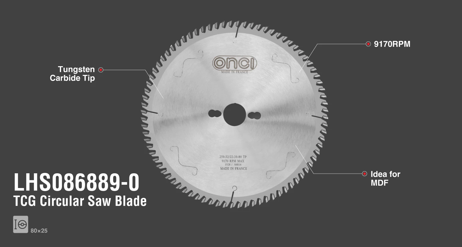 تیغ اره الماسه انسی MDF بر 25*80 مدل LHS086889-0