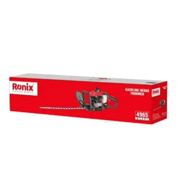 ابزارهای باغبانی بنزینی قابلیتهای زیادی را به شما ارائه میدهند و با کمک آنها میتوانید بدون نیاز به برق، ساعتهای متمادی به فعالیتهای باغبانی خود مشغول باشید. شمشاد زن بنزینی رونیکس مدل 4965 برای هرس شمشادهای بلند با شاخههای ضخیم استفاده میشود. شمشاد زن بنزینی رونیکس مدل 4965 با موتور بنزینی دو زمانه با حجم 22/5 سی سی و توان 0/8 اسب بخار و تیغه 70 سانتیمتری جهت اصلاح حرفه ای انواع بوته و درختچه ها کاربرد دارد. طراحی ارگونومیک متناسب با موقعیت مچ دست کاربر برای استفاده راحتتر در جهات گوناگون و موتور با آلایندگی بسیار کم و با حداقل میزان تولید بو و دود از دیگر ویژگی های این شمشاد زن بنزینی است.