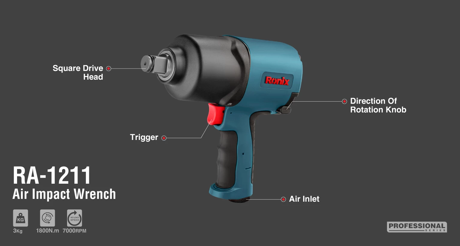 بکس بادی 3/4 اینچ رونیکس با مدل RA-1211، مجهز به موتور قدرتمند دو چکشه با گشتاوری بالغ بر 1800 نیوتن‌متر است. بدنه‌ این دستگاه، دارای طراحی ارگونومیک و از جنس کامپوزیت است که وزن آن را کمتر کرده و در نتیجه، تبدیل به ابزاری خوش‌دست و سبک برای کاربران حرفه‌ای می‌شود.