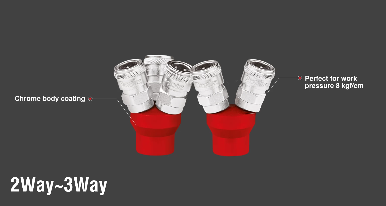 بدنه بزرگ محصول 3WAYS رونیکس با روکشی از جنس کروم پوشانده شده و مقاومت فوقالعاده بالایی در برابر سایش دارد. این محصول برای فشار کاری 10 kgf/cm² توصیه میشود.