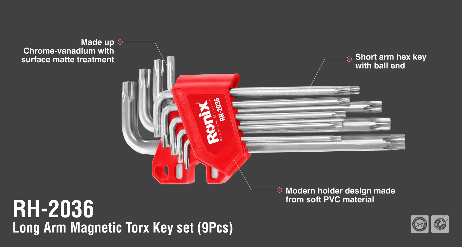 طراحی ابزار باید طوری باشد که علاوه بر کارایی بالا، جای کمی اشغال کند. مجموعه 9 عددی آلن ستارهای بلند مگنتی رونیکس با کد آیتم RH-2036 توانسته تمام نیاز کاربر را برطرف کند.