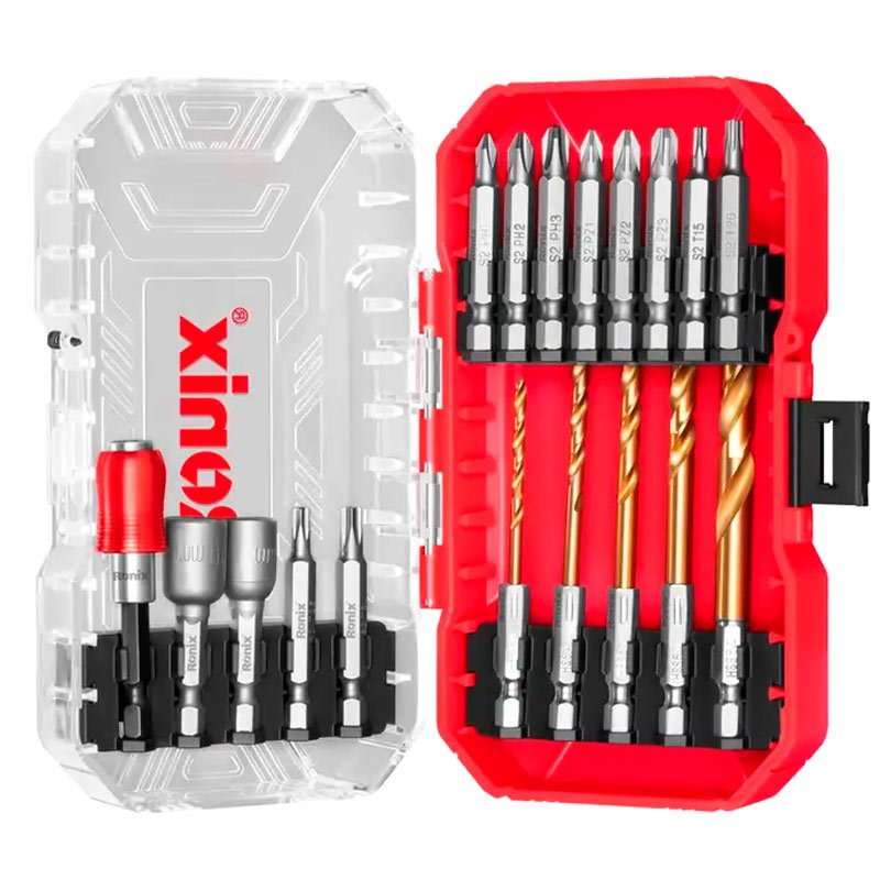 ست 18 عددی مته و سری پیچ گوشتی رونیکس دارای کیف ABS مقاوم است که برای نگهداری و حمل سریع و راحت تر کاربرد دارد . ست 18 عددی مته و سری پیچ گوشتی رونیکس شامل مجموعه ای کامل از مته های پایه دار ، سری های پیچ گوشتی و سری بکس های کاربردی جهت انجام انواع کاربری می باشد .