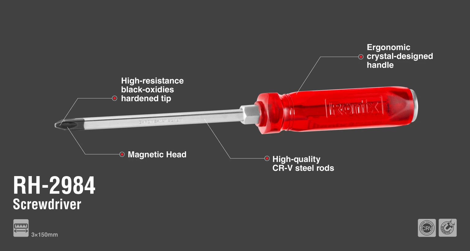 رونیکس، انواع پیچ گوشتی ضربهخور را در مدلهای متعدد و برای کاربردهای مختلف تولید میکند؛ از کاربردهای خانگی تا صنعتی و ساختمانی. پیچ گوشتی RH-2984 یکی از نمونههای متنوع از انواع پیچ گوشتی ضربهخور تکی رونیکس است که با خاصیت اهرمی و گشتاوری خود برای پیچاندن، بازکردن و بستن پیچهای چهارسو طراحی و ساخته شده است.