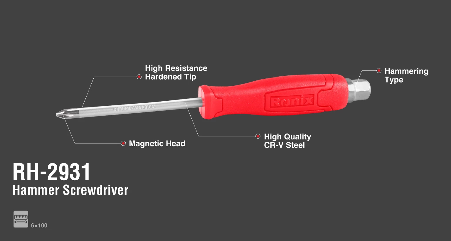 پیچ گوشتی چهارسو RH-2931 رونیکس ضربه‌خور بوده و با دوام فوق‌العاده بالا تولید می‌شود تا همراه همیشگی شما باشد.