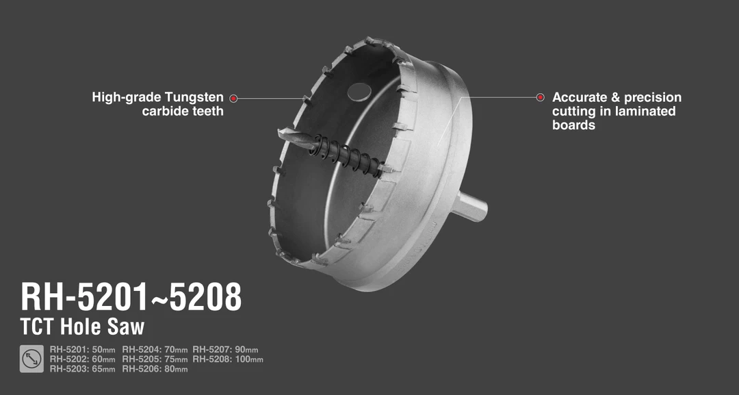 مته گردبر RH-5205 قطعه ای ایده آل برای مشاغلی چون نجاری است که در هنگام برش چوب، نئوپان و MDF مورد استفاده قرار می گیرد. این مته دارای دندانه هایی از جنس تنگستن کاربید با بالاترین کیفیت می باشد و می تواند برشی دقیق در تخته های چند لایه ایجاد کند. این دندانه ها به گونه ای طراحی شده اند که امکان برش هایی آسان و سریع را برای کاربر فراهم می کنند و سرعت انجام کار را بالا می برند.