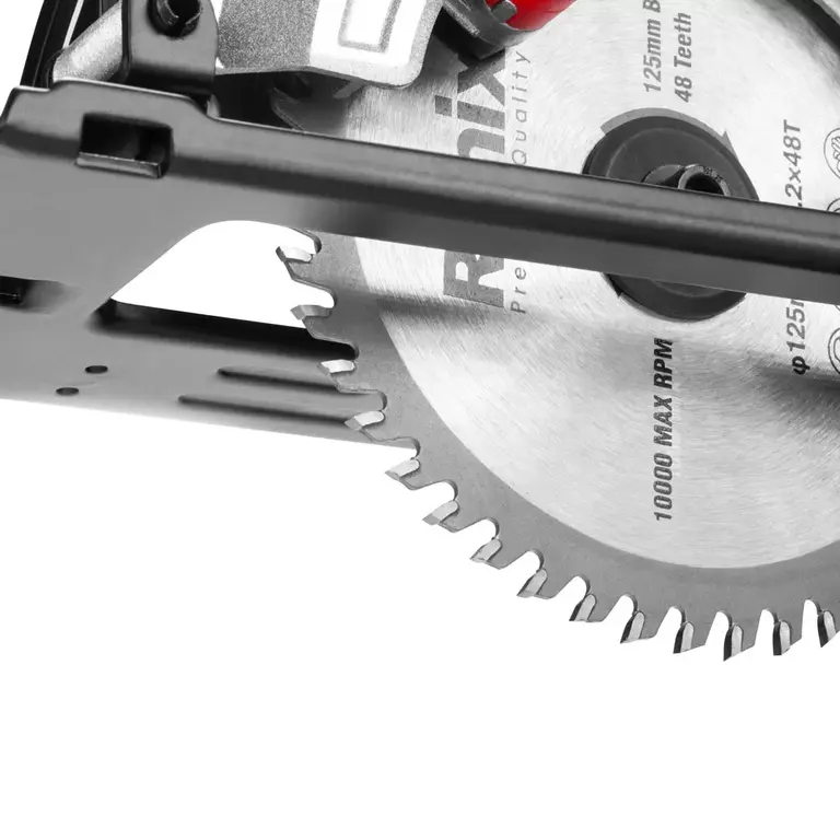 قطر تیغه این محصول 125 میلیمتر بوده و برش آن در زوایای صفر و 45 درجه با توجه به نوع فعالیت و برش مورد نظر قابل تنظیم است. حداکثر میزان برش در زاویه صفر درجه، 32 میلیمتر بوده و در زاویه 45 درجه، 48 میلیمتر است. محافظ صفحه برش نیز دارای طراحی منحصر به فردی برای هدایت گرد و غبار و ضایعات چوبی به بیرون از مسیر برش است.