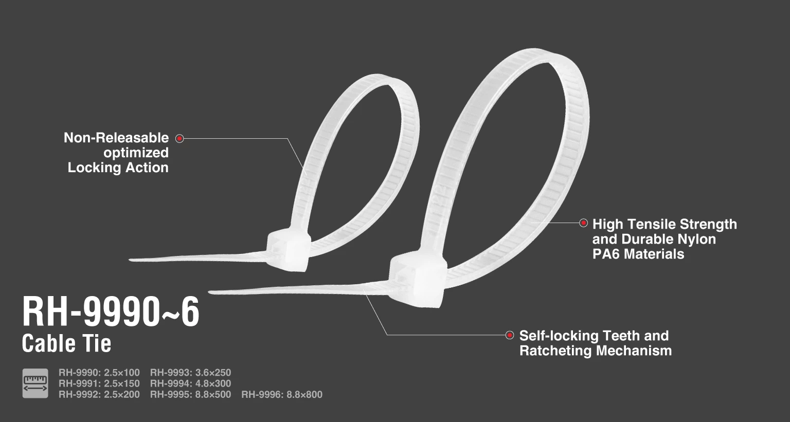 بست کمربندی RH-9992 رونیکس، از نایلون PA6 پلی کاپرولاکتام با پایداری حرارتی، ثبات ابعادی و کیفیت سطحی بالا ساخته شده است. این محصول پرکاربرد، مقاومت کششی و مقاومت به تابخوردگی بالایی دارد. قفلشوندگی قابل اطمینان، طول عمر بالا و اتصال دائمی و پایدار، از مهمترین مزایای آن هستند.