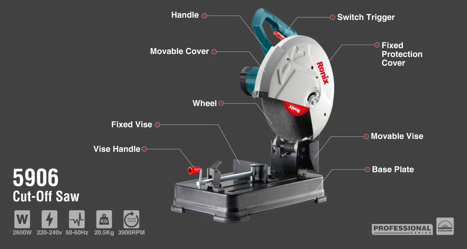 موتور پروفیلبر رونیکس مدل 5906 با توان 2600 وات، موجب عملکرد قدرتمند و پایدار این محصول در برشهای سنگین میشود.