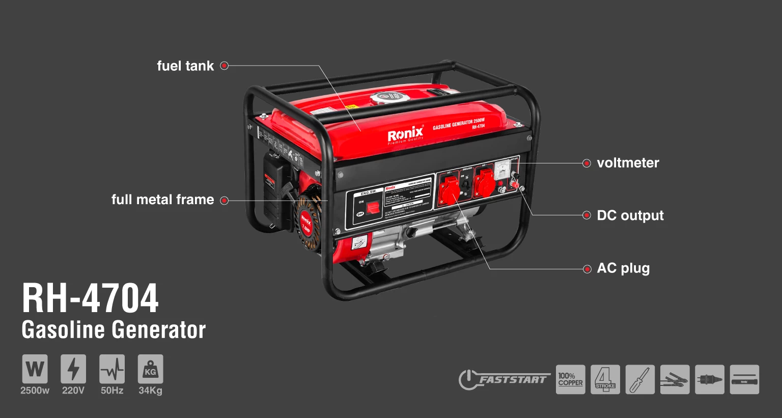 + ژنراتور بنزینی 2500 وات 4704-RH رونیکس، در کاربریهای خانگی و صنعتی همراه خوبی برای شما است!