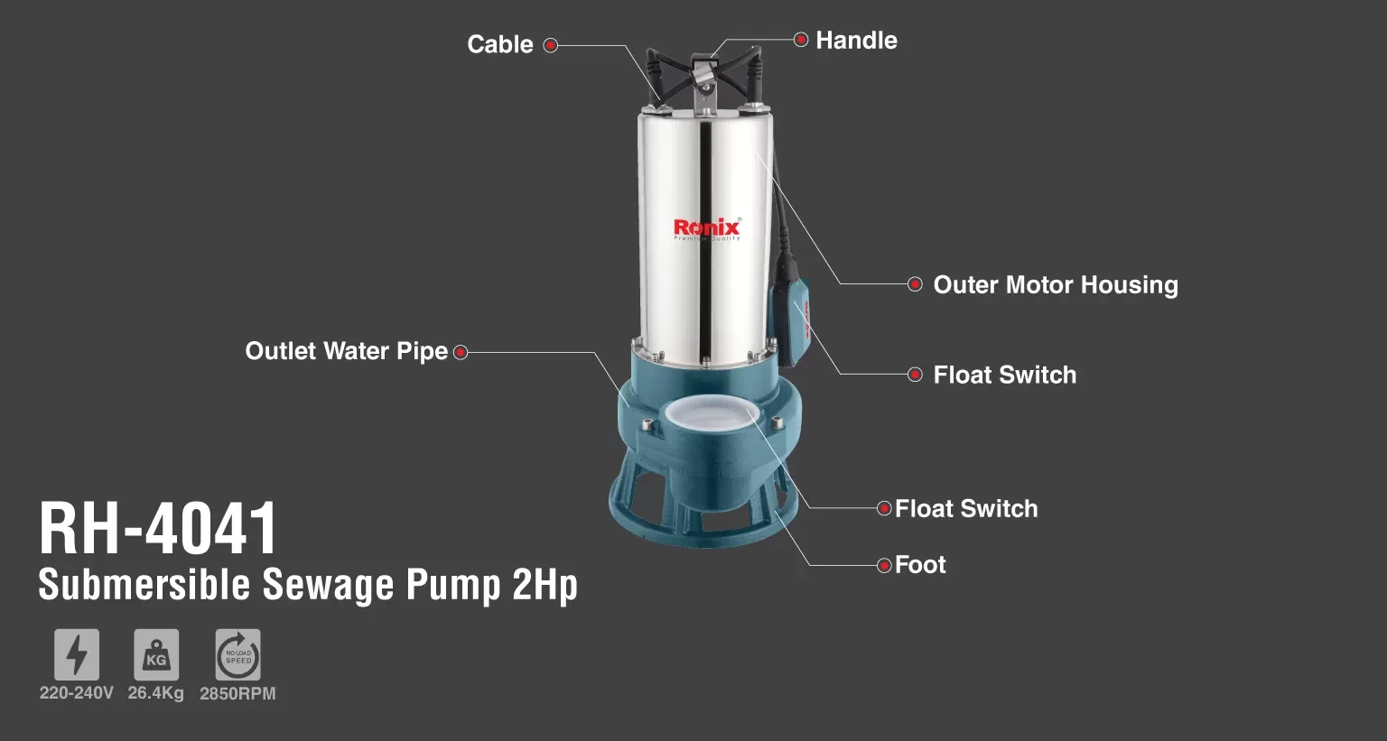 + ویژگیهای پمپ لجنکش 2 اسب 15 متری مدل RH-4041 رونیکس