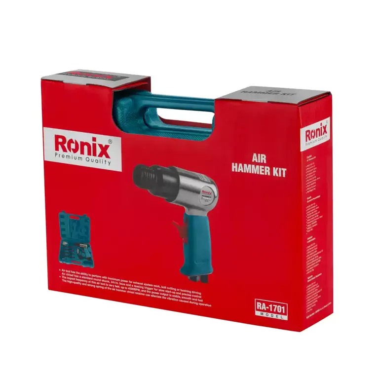 کیت چکش بادی RA-1701 رونیکس در یک كيف BMC مقاوم و مجموعه كاملی از قلمها و متعلقات کاربردی برای كاربريهاي متنوع به بازار ابزار ایران عرضه میشود.