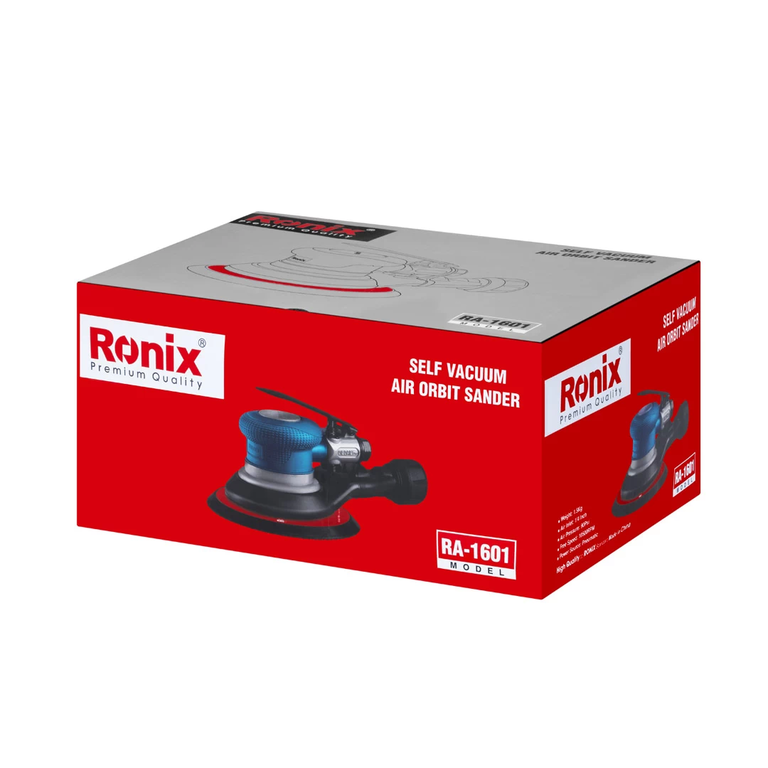 سنباده زن اوربیتال بادی رونیکس مدل RA-1601، در جعبه رنگی همراه با متعلقاتی شامل آچار، رابط بادی، لوله غبارگیر و کیسه غبارگیر به بازار ابزار ایران عرضه میشود.