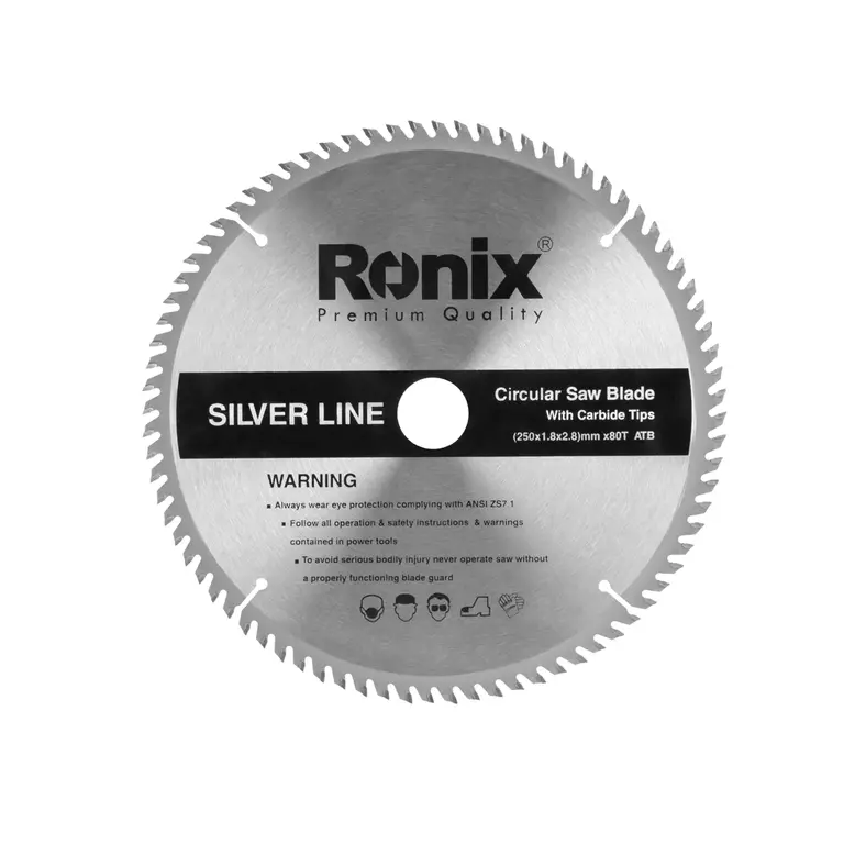 رونیکس انواع اره الماسه را مانند سایر محصولات خود با کیفیت و تنوع بینظیر تولید میکند. اره الماسه ساده 80×250 silver line رونیکس مدل RH-5130 دارای بدنه فولادی بادوام و 80 عدد دندانه از جنس تنگستن کارباید است و دقت برش بالایی دارد. این صفحه برش با طراحی پیشرفته براساس استاندارد ATB برای چوبهای سخت و فرآوردههای چوبی مانند نئوپان ساخته شده است. همچنین این اره الماسه، برای استفاده در انواع اره گردبر، اره فارسیبر، اره رومیزی و اره میزی صنعتی مناسب است. در بخش شرح جزئیات محصول، مشخصات اره الماسه RH-5130 رونیکس بیشتر بررسی میشود.