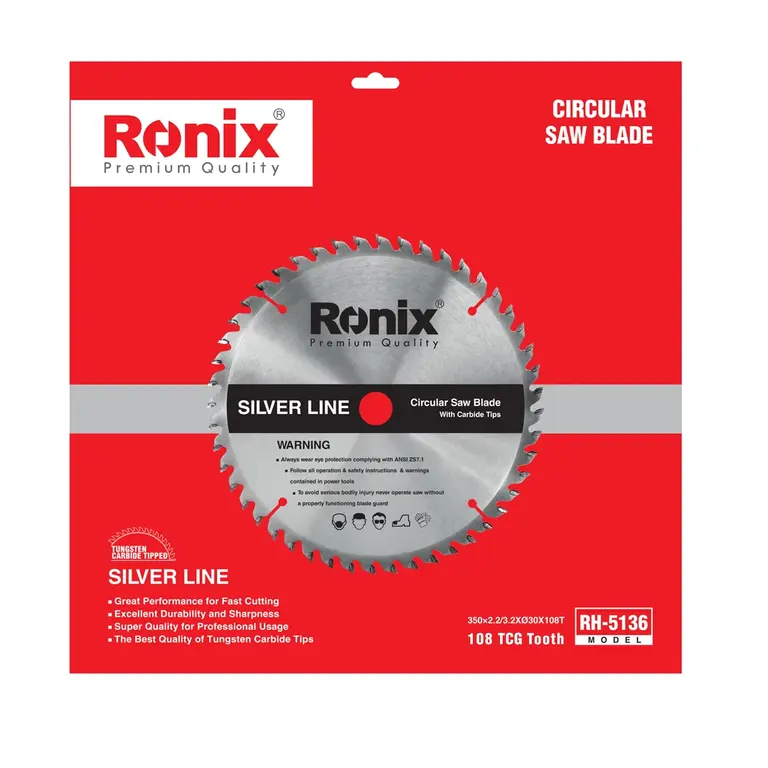 - تولید شده بر اساس سطح کیفیت صنعتی با طراحی برتر و دندانههای تنگستن کارباید که حداکثر مقاومت در حین کار و افزایش طول عمر را فراهم می کند. - طراحی پیشرفته بر اساس استانداردهای ATB (برای چوبهای سخت مانند نئوپان) و TCG (برای چوبهای چندلایه مانند ام دی اف و ...) - لبههای تیغه از جنس کاربید تولید شده تا در برابر فشارها مقاومت بالایی داشته باشد. - دارای بدنه فولادی مستحکم که بالاترین دقت و مقاومت را در برابر انحناء و شکستگی به هنگام برش فراهم میآورد. - طراحی منحصر به فرد دندانهها برای تسهیل فرایند برش - بسته بندی شده در جعبه حرفهای طراحی شده توسط رونیکس به منظور حفاظت از تیغهها در زمان حمل و نقل -زاویه مثبت برش سبب ایجاد برش های صاف و تمیز شده همچنین نرخ پیشروی را تسهیل میکند