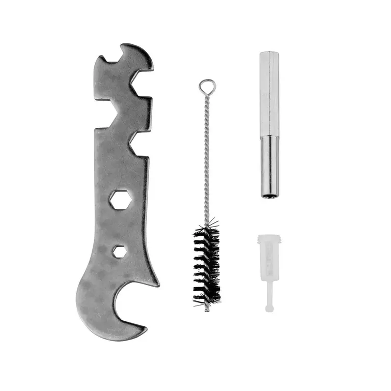 دارای یک فرچه، یک آچار مخصوص و یک فیلتر