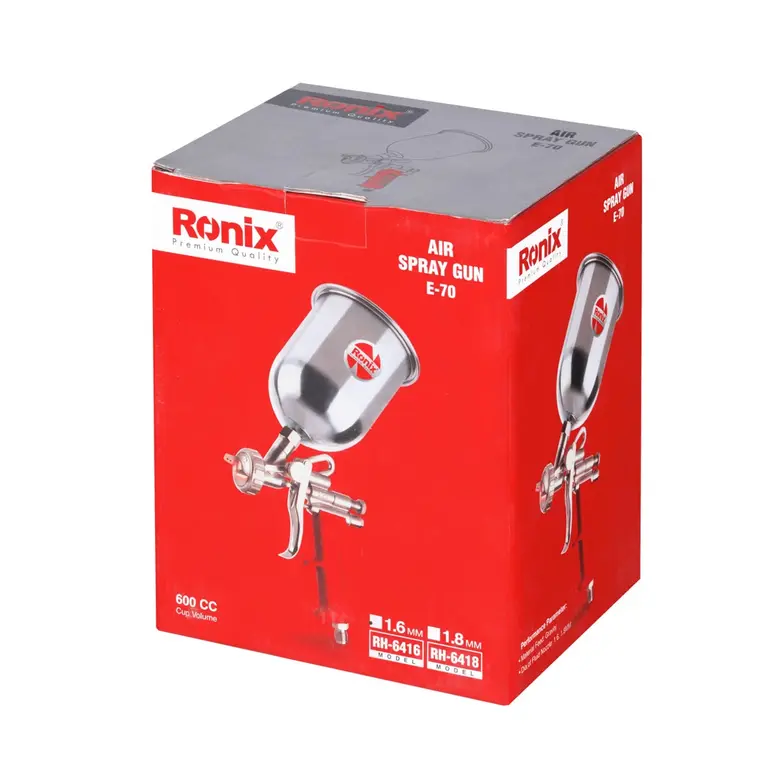 پیستولههای بادی RH-6416-RH-6418رونیکس دارای محفظهای از جنس فولاد و روکشی از کروم هستند که این ویژگی طول عمر این ابزارآلات را به همراه دارد. این پیستولهها از طراحی جمع و جور و ارگونومیک برخوردارند و در عین حال به کاربر این امکان را میدهند که پاشش آسانی را روی سطوح مدنظر داشته باشد.