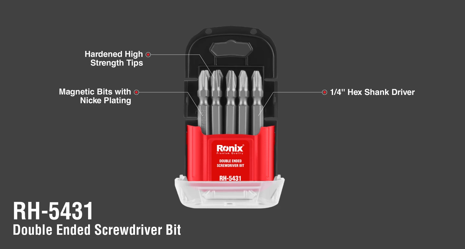 نوک این سرپیچ گوشتی یک سر چهار سو یک سر دو سو آهنربایی و مقاوم است و همچنین تراشکاری بسیار دقیق بر طبق استاندارد های جهانی DIN3126 بر روی آن انجام شده است . روی سطح این سرپیچ گوشتی رونیکس نیز به طور کامل عملیات حرارتی صورت گرفته است .