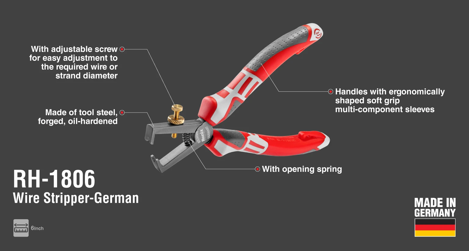 این سیمچین 165 گرمی و با طول 160 میلیمتر، از فولاد ابزار فورجشده و سختشده با روغن ساخته شده است. آلیاژ زولینگن باعث میشود RH-1806 طول عمر بالا، مقاومت در برابر سایش و دوام فوقالعاده داشته باشد تا سالها بتوانید از آن استفاده کنید.