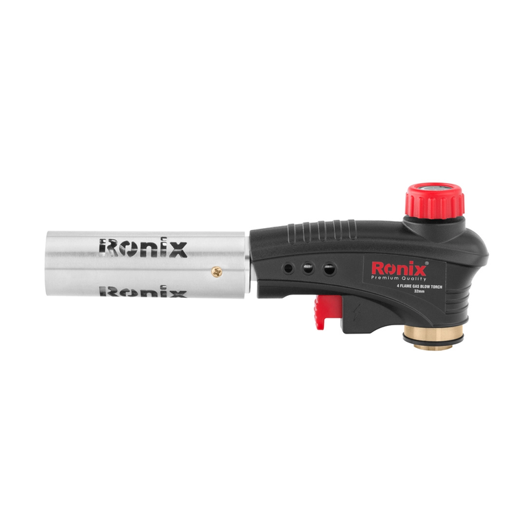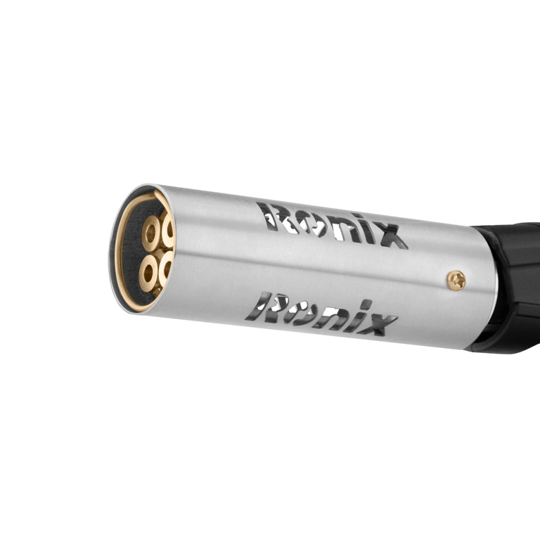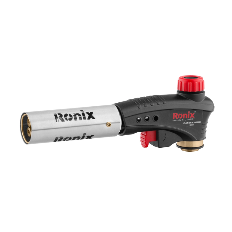 این شعلهافکن رونیکس به راحتی با یک حرکت ملایم انگشت بر روی تنظیمکننده شعله، قابل تنظیم و قفلشدن است. همچنین مجهز به فناوری احتراق پیزوالکتریک خودکار است و میتواند شعلهای با دمای بالا تولید کند. این سری شعلهافکن با استفاده از گاز بوتان و روش احتراق خودکار پیزوالکتریک، بسیار ایمن و کاربرد آسانی دارد. در ادامه به بررسی ویژگیهای سری شعلهافکن ۴ شعله رونیکس میپردازیم.